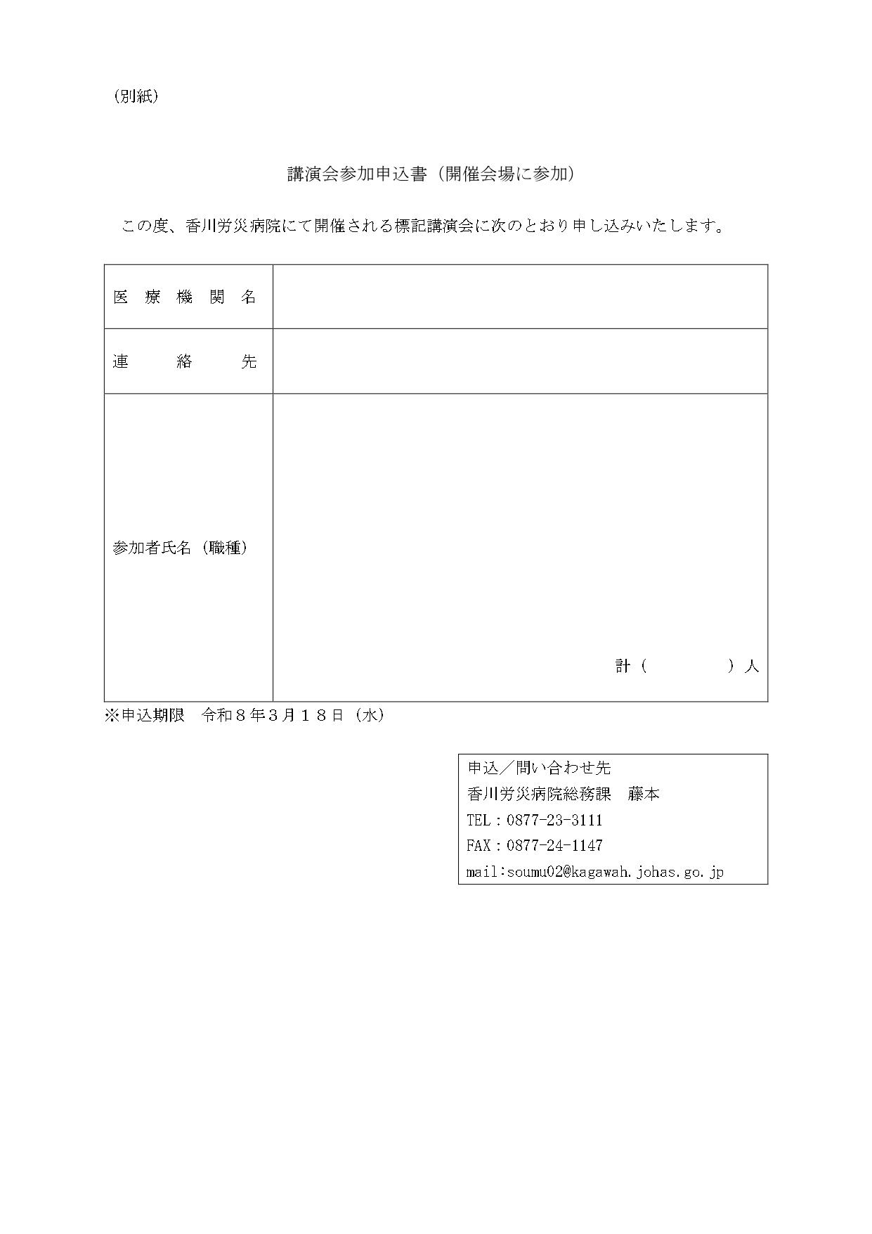 なお、参加申し込みにつきましては下記のご案内をご確認いただき、別紙の講演会参加申込書により、令和8年3月18日(水)までにメールまたはFAXにてお申込みください。
