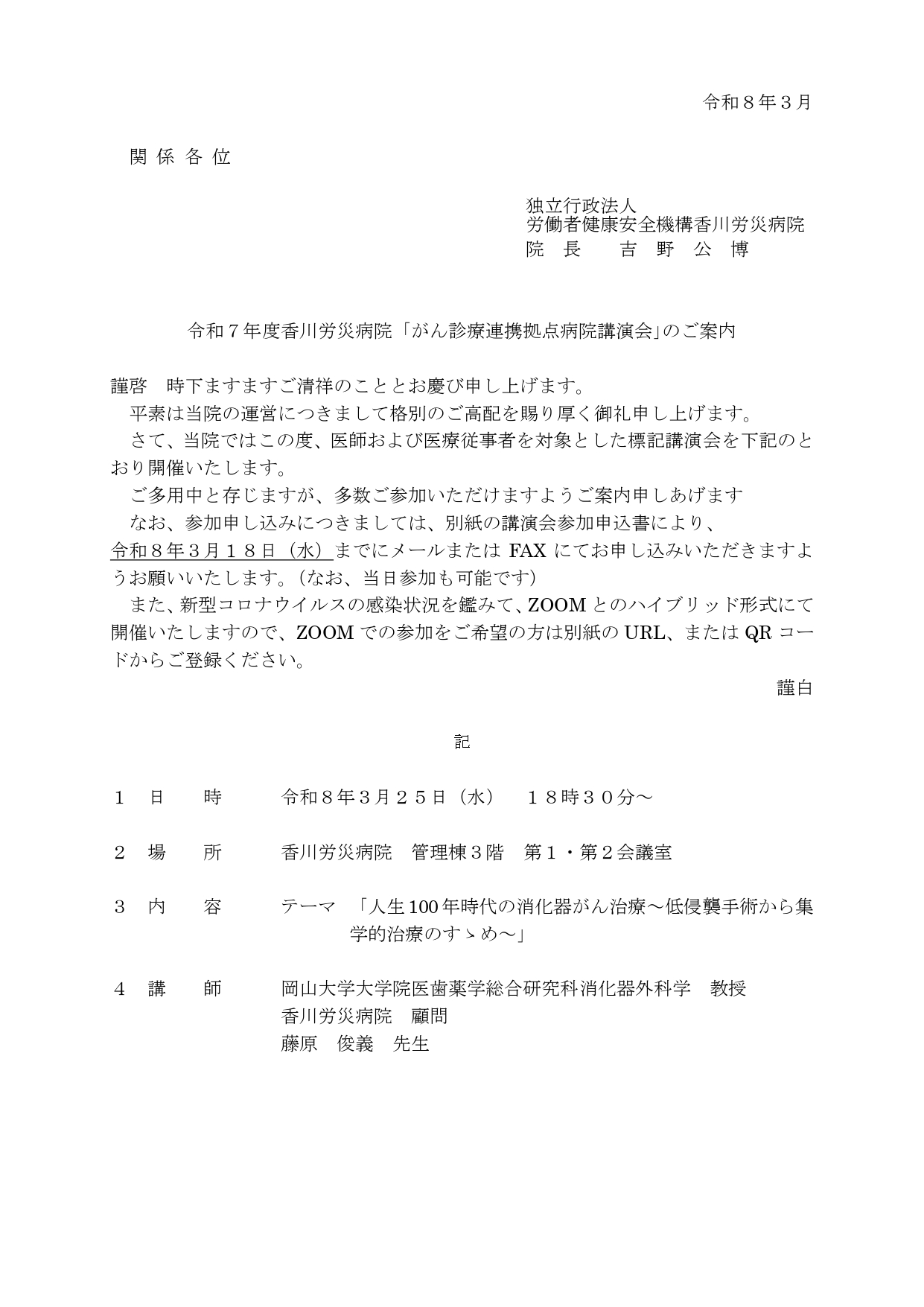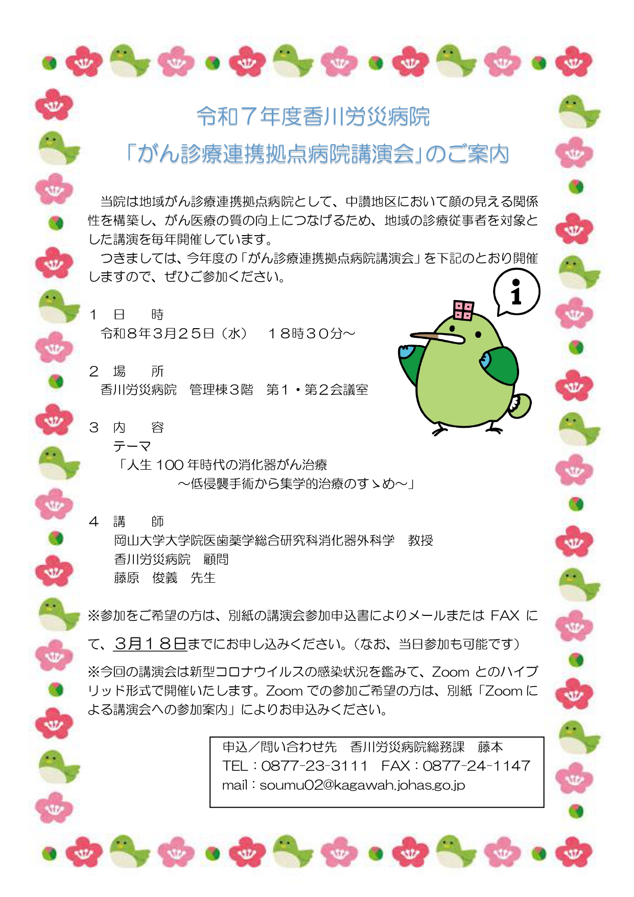 令和7年度「がん診療連携拠点病院講演会」の開催について